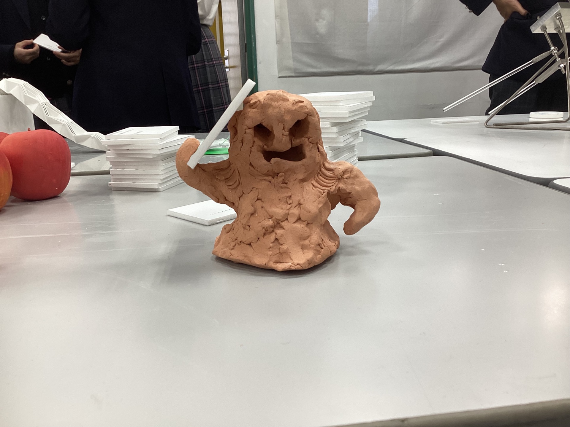 材料はテラッコッタで、ドロドロの埴輪を作りました。
